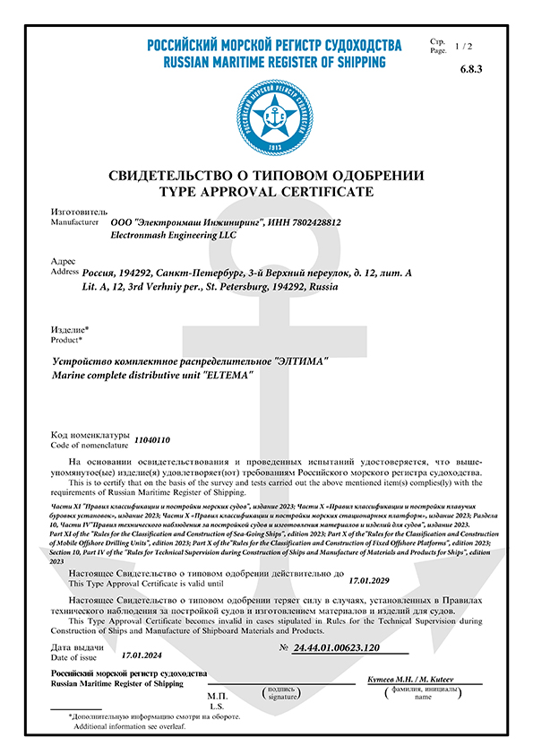 Поставленное оборудование: «КРУ «»Элтима»» 10кВ 31,5кА/1600А