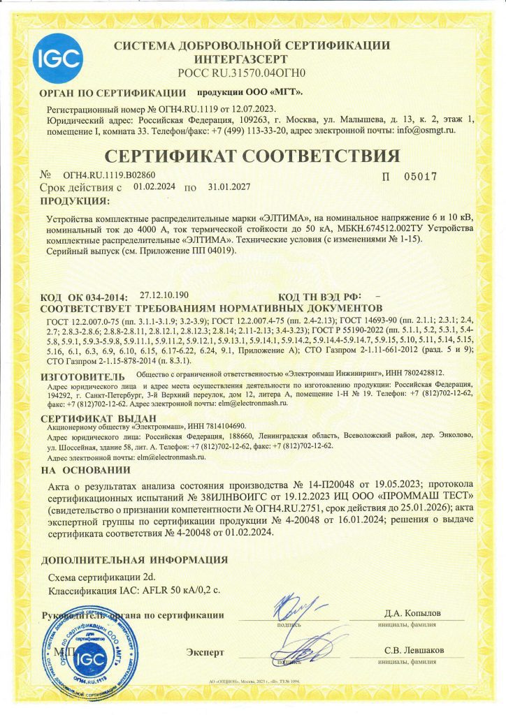 Поставленное оборудование: КРУ «Элтима»10кВ 31,5кА/1250А; КРУ «Элтима+» 35кВ 31,5кА/1250А
